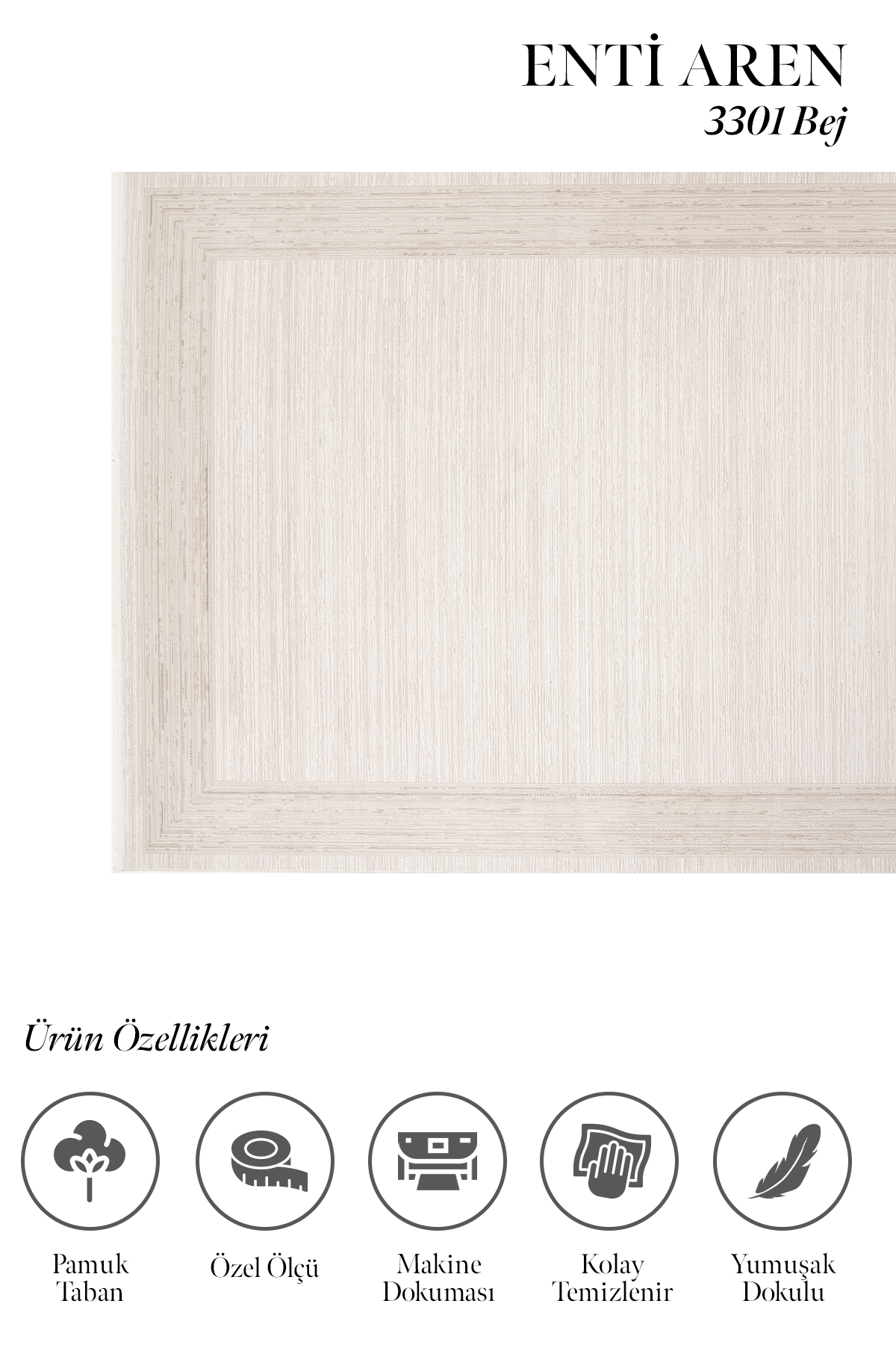 Aren 3301 Bej - Zarif Çerçeve Geçişli Düz Bej Halı