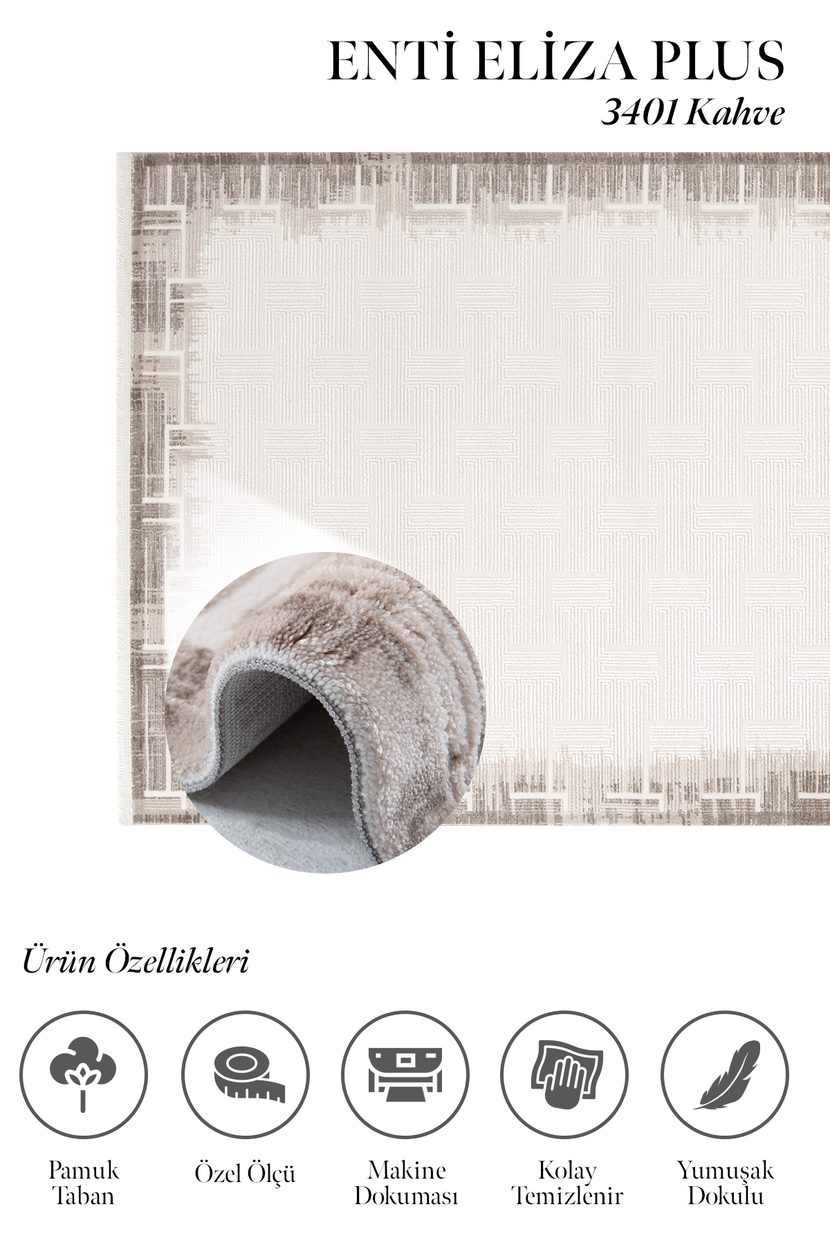 Eliza Plus 3401 Kahve - Modern ve Zarif Çerçeve Desenli HalıEnti104800130717011