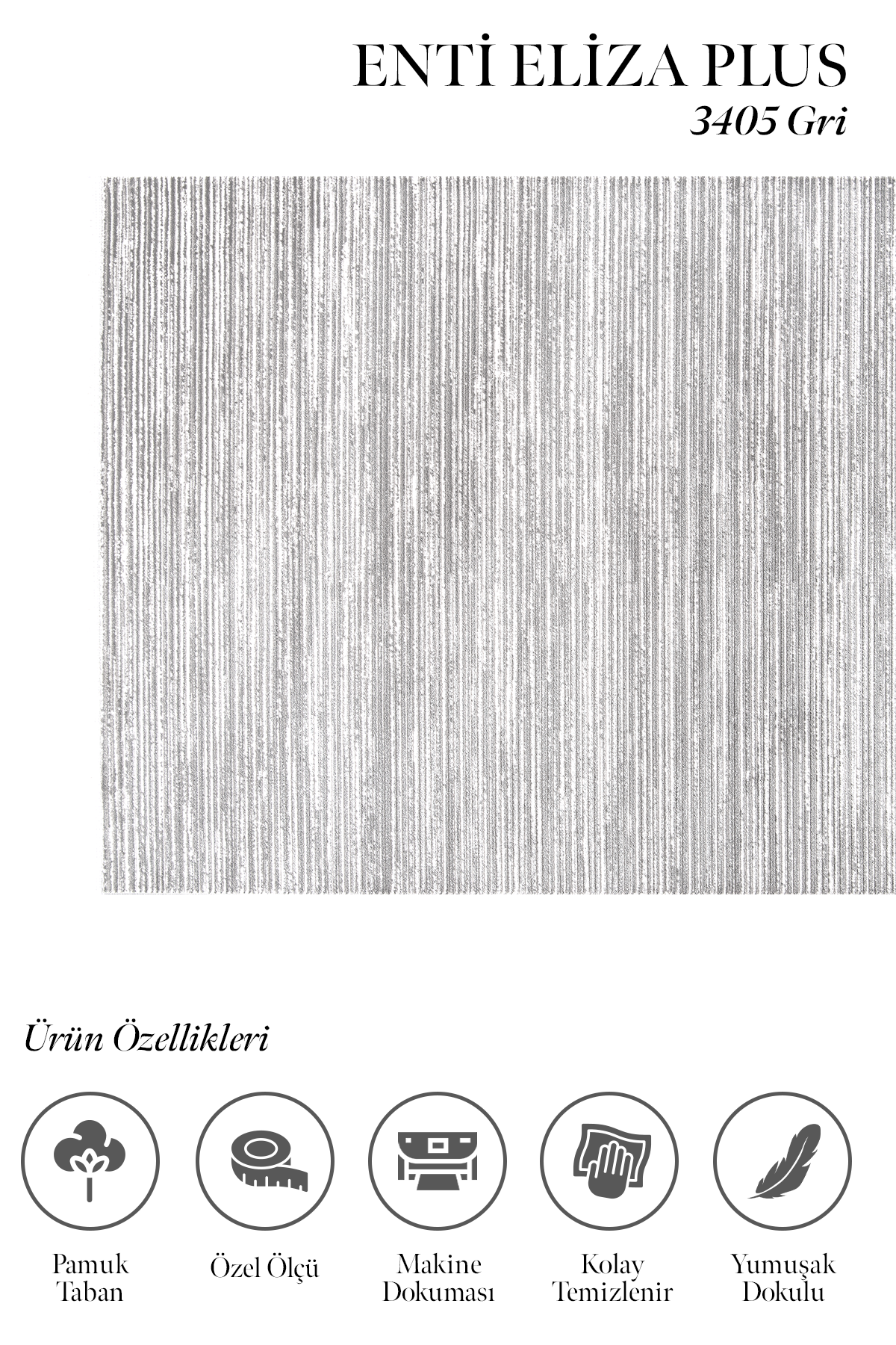 Eliza Plus 3405 Gri - Minimalist Gri Tonlarda Çizgili HalıEnti104800516017011