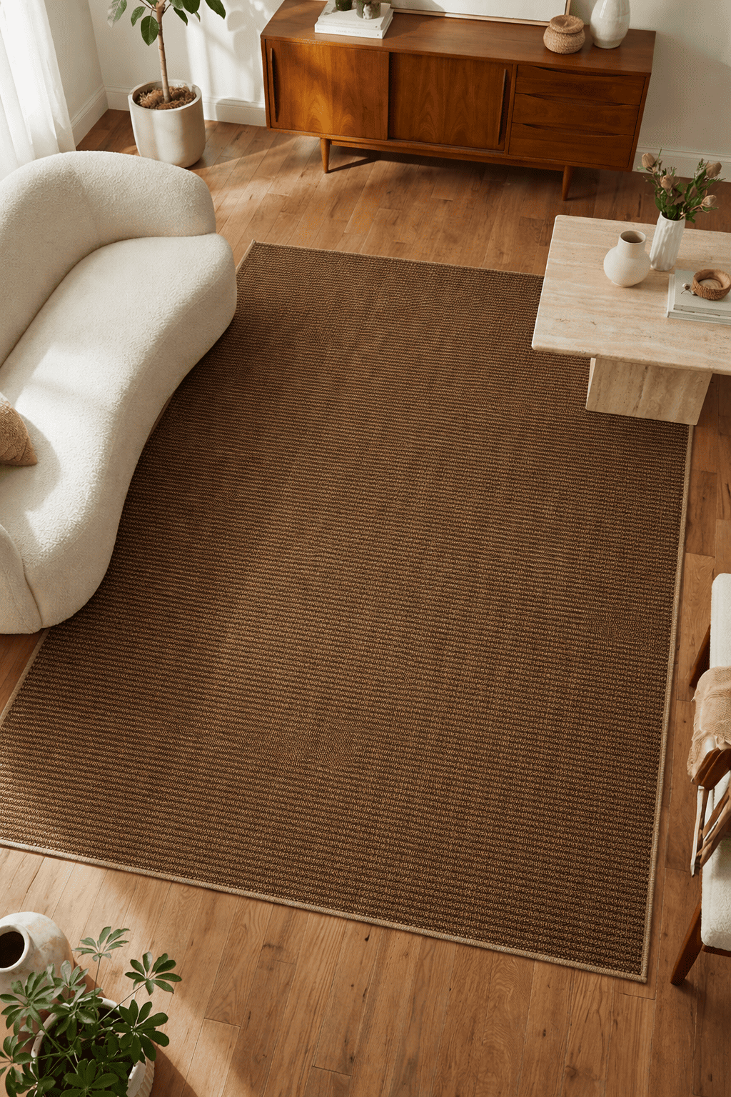 7 mm hav yüksekliği ayak altında ideal konfor sunarken, 2000 gr ağırlığı sayesinde tok ve kaliteli bir duruş sağlar. Jut tabanlı yapısı zemine sağlam tutunur. Saçaksız ve çoban dikişli kenar bitişi modern, temiz ve düzenli bir görünüm kazandırır. Polyester iplik dokusu uzun ömürlü ve günlük kullanıma uygundur.