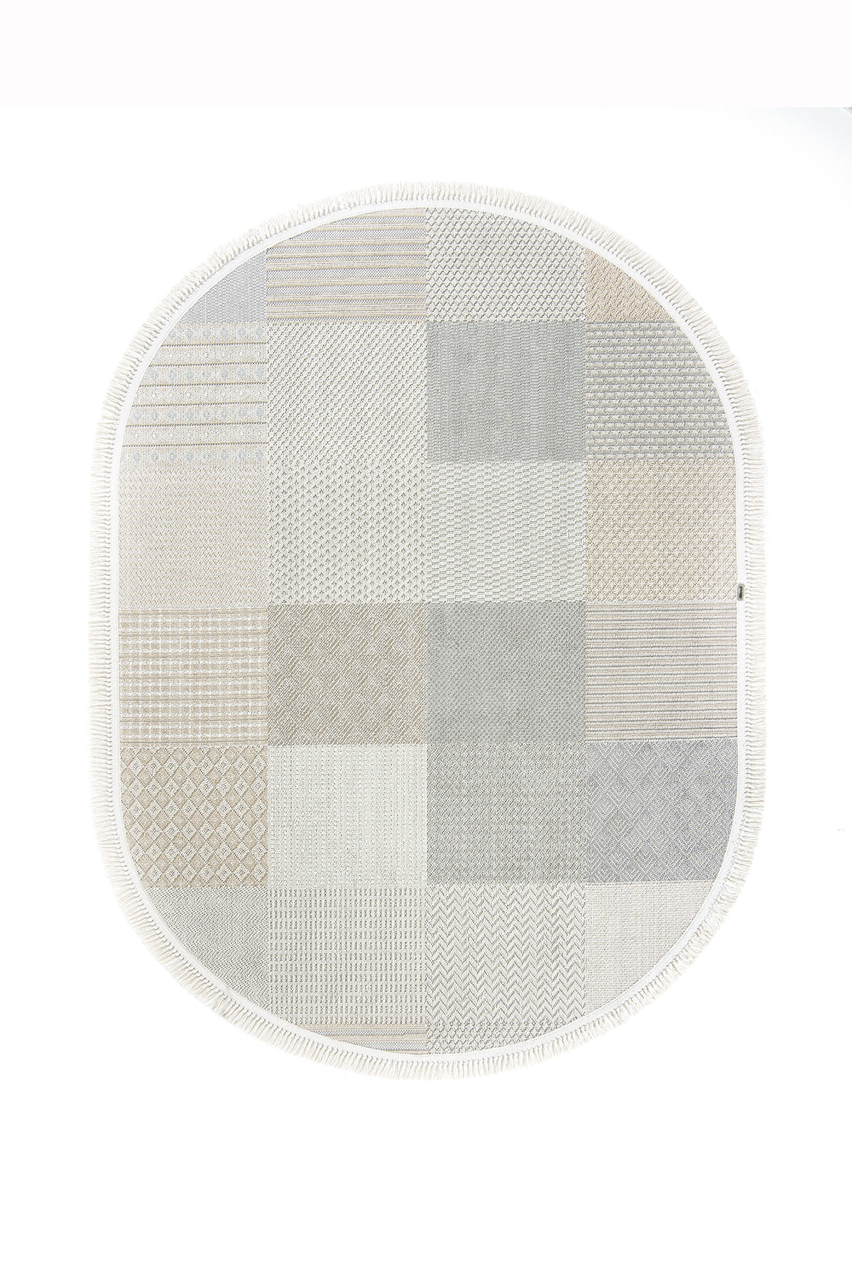 Bonn 8806 Bej Oval - Modern Geometrik Desenli Tozumaz Halı 080x150