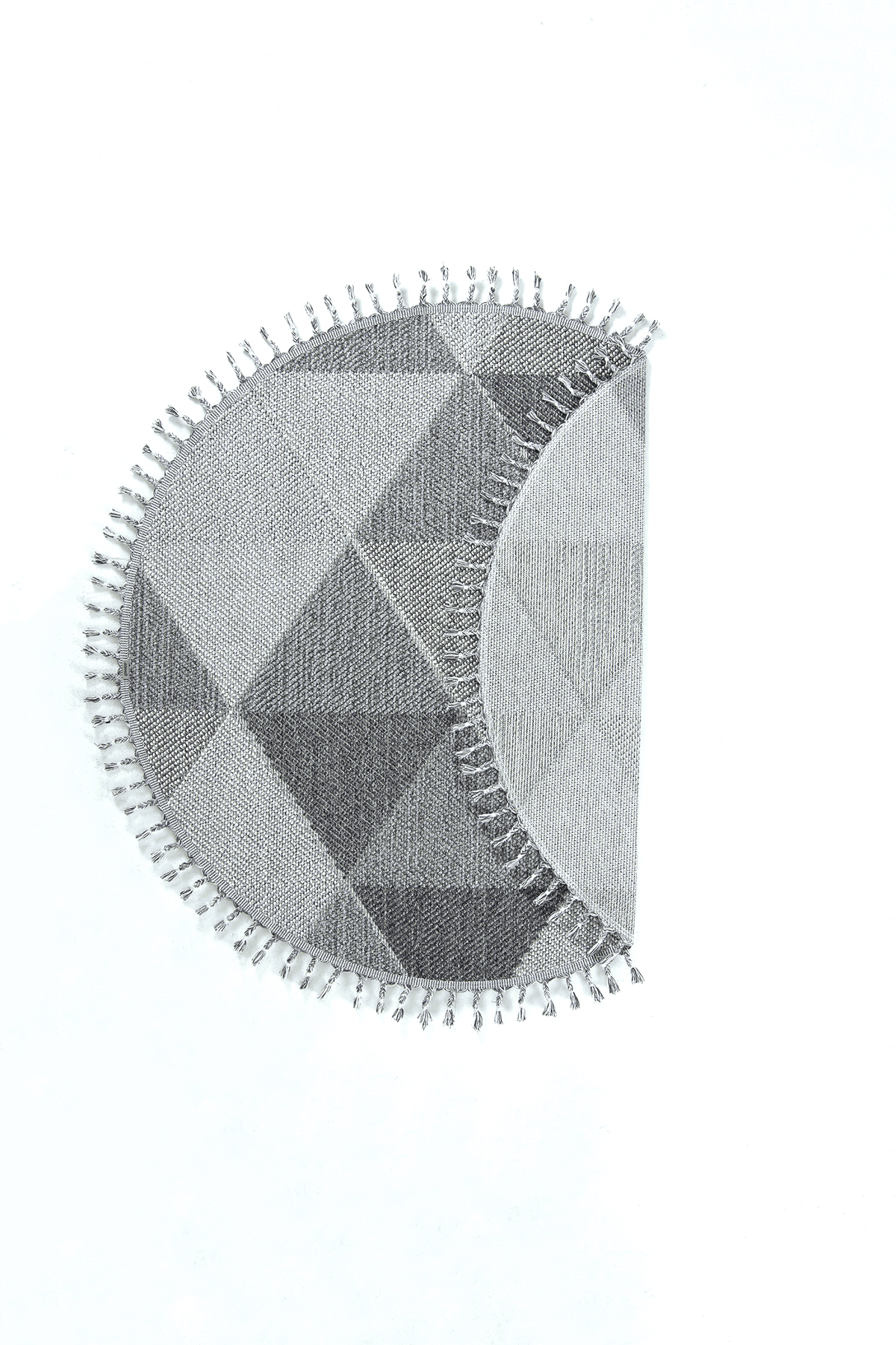 Bukle 1401 Gri Daire - Geometrik Desenli Yuvarlak Tozuma Halı