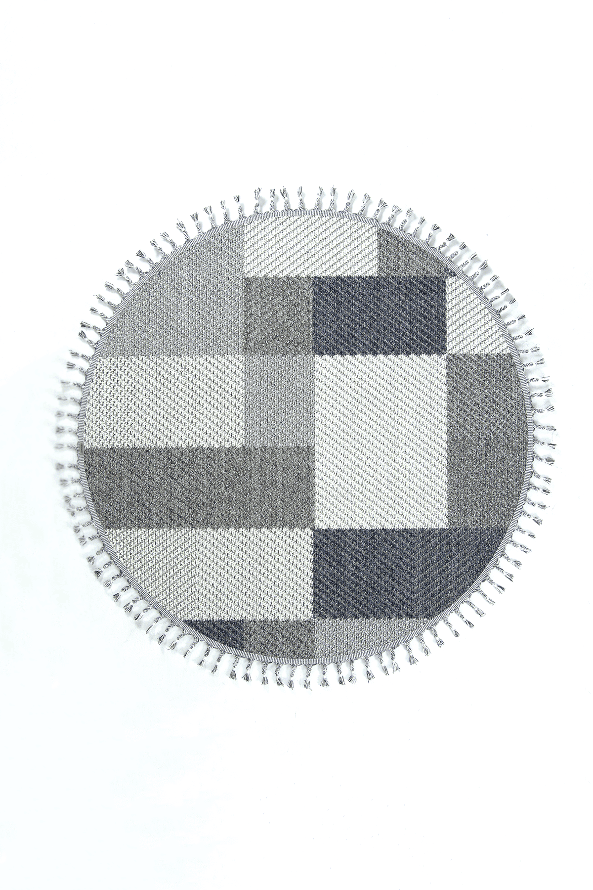 Bukle 1403 Gri Daire - Modern Geometrik Desenli Tozumaz Halı 080x080