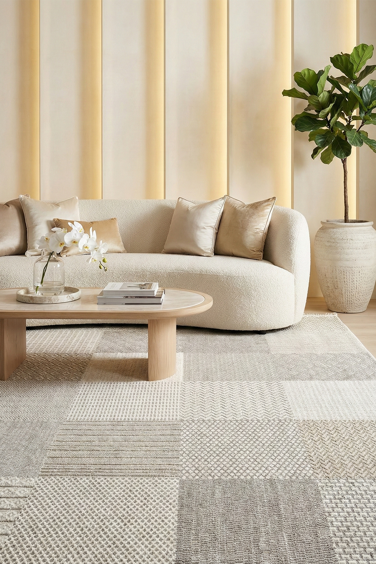 Dekorenti Bonn 8806 Bej, modern geometrik desenleri ve sade renk yapısıyla yaşam alanlarına ferah ve şık bir görünüm kazandırır. Bej tonları sayesinde mekânı daha aydınlık ve geniş gösterir.