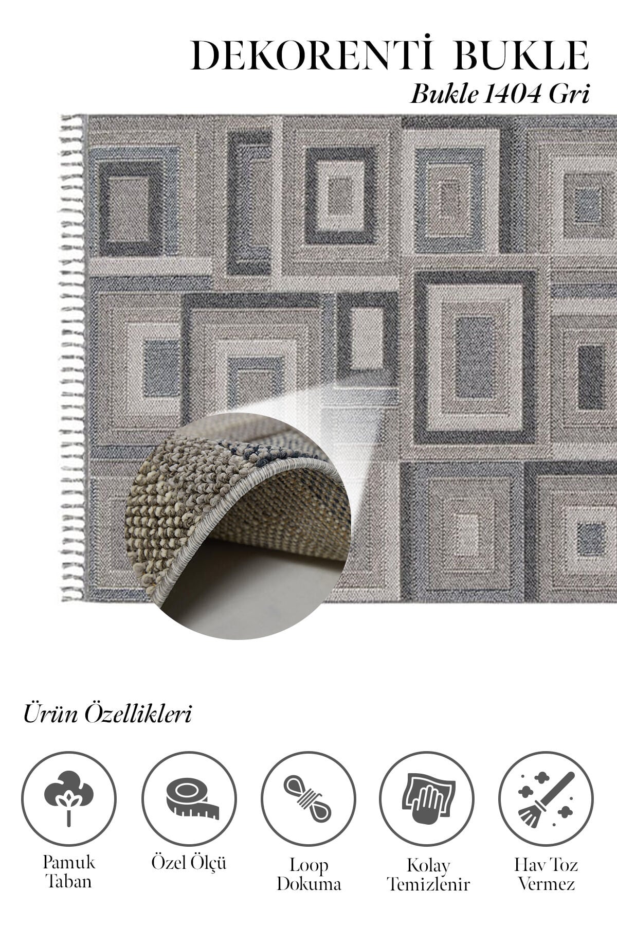 Modern dekorasyonu tercih eden kullanıcılar için ideal olan Dekorenti Bukle 1404 Gri; salon, oturma odası, koridor ve genç odalarında şık ve kullanışlı bir halı tercihidir.