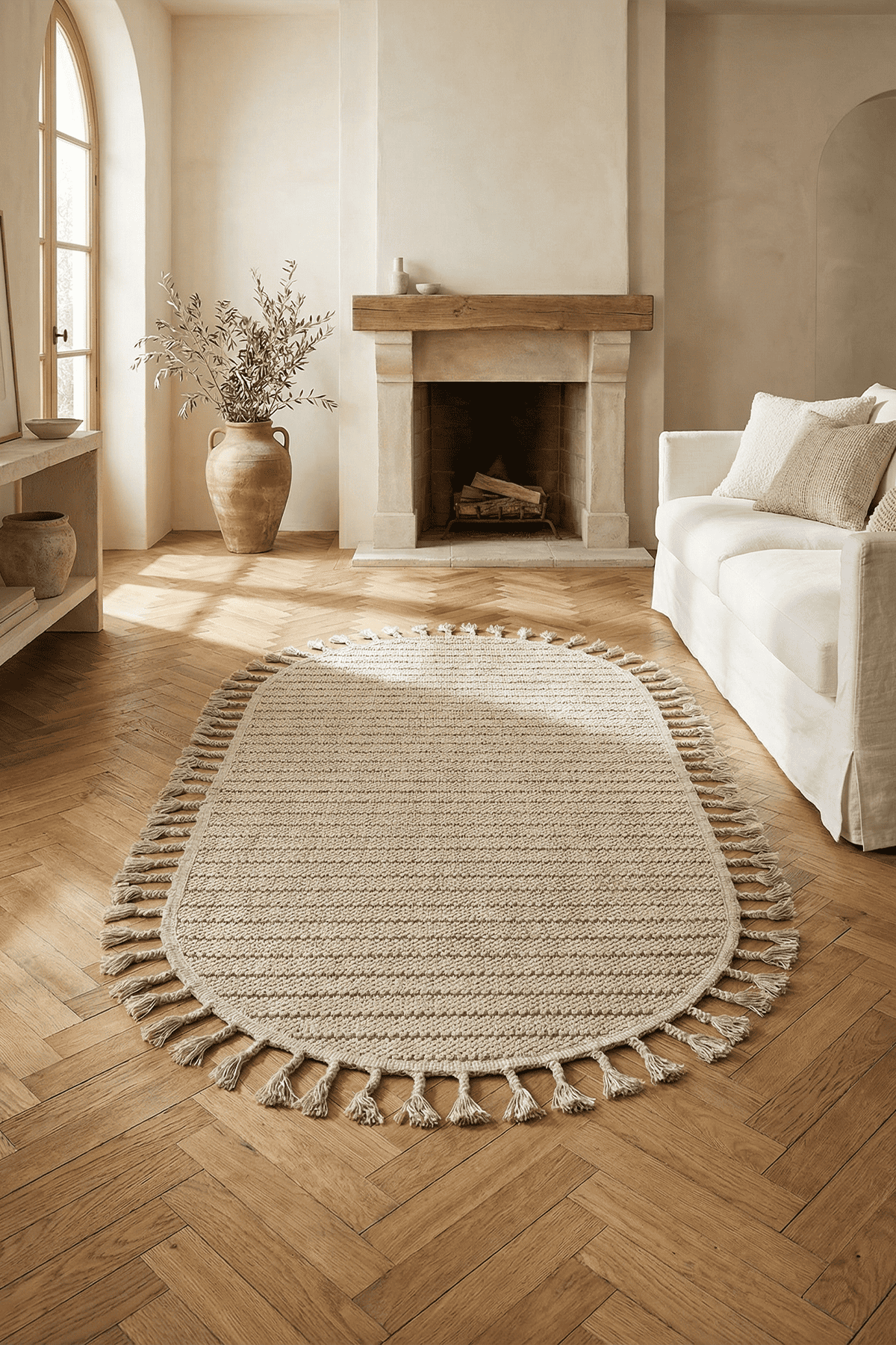 Dekorenti Bukle 1412 Bej Oval – Bohem Tarzı Bukle Dokuma Halı