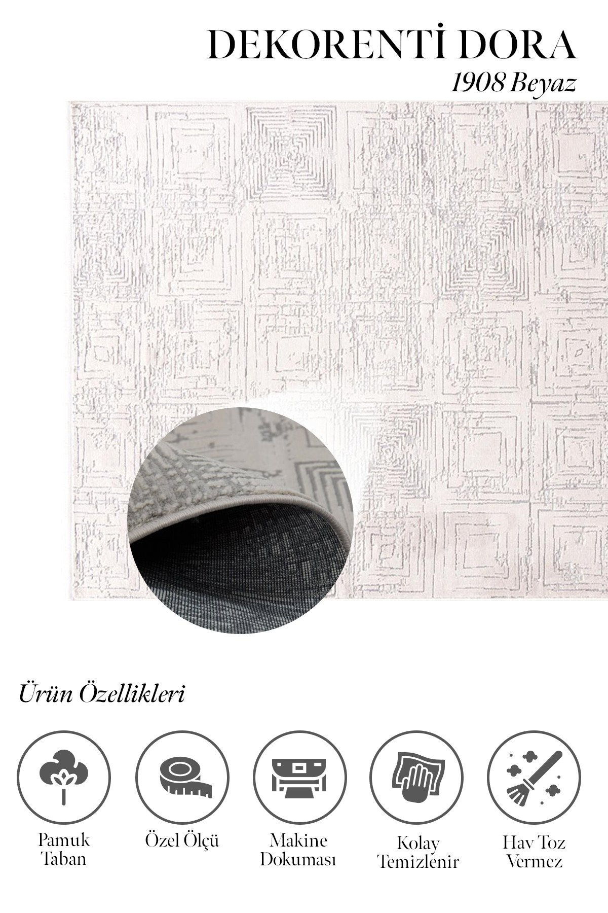 Dora 1908 Beyaz - Modern Polip Jüt Taban Makine Halısı