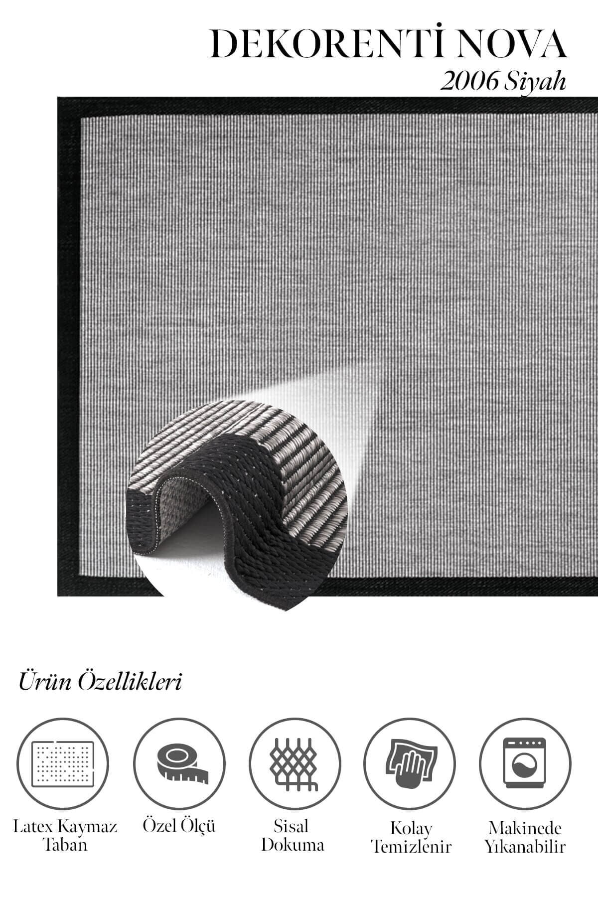 Dekorenti Nova 2007 Siyah - İnce Çizgili Kaymaz Latex Tabanlı Halı