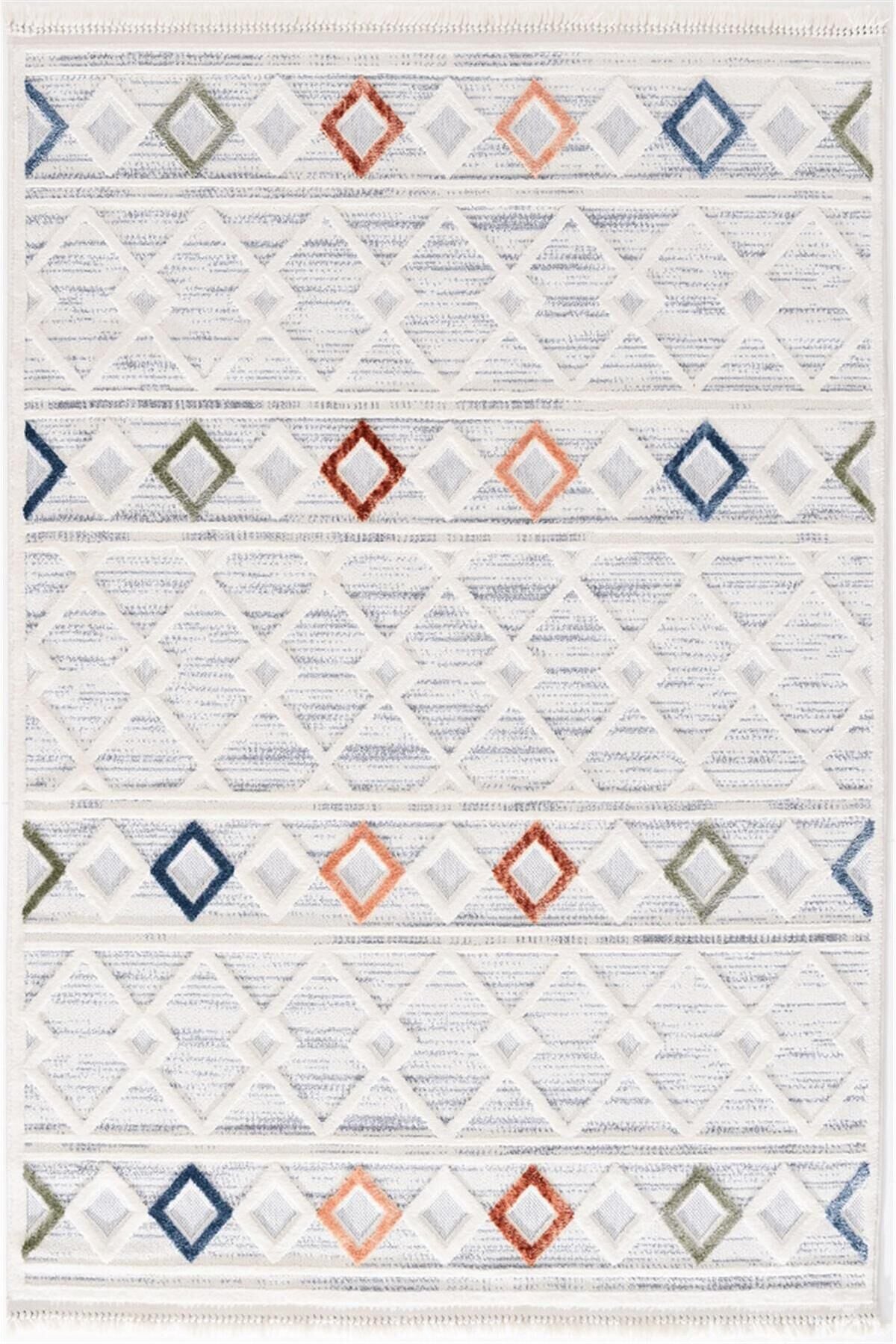 Dekorenti Polo 7805 Multi - Modern Etnik Baklava Desenli Örgü Saçaklı Halı