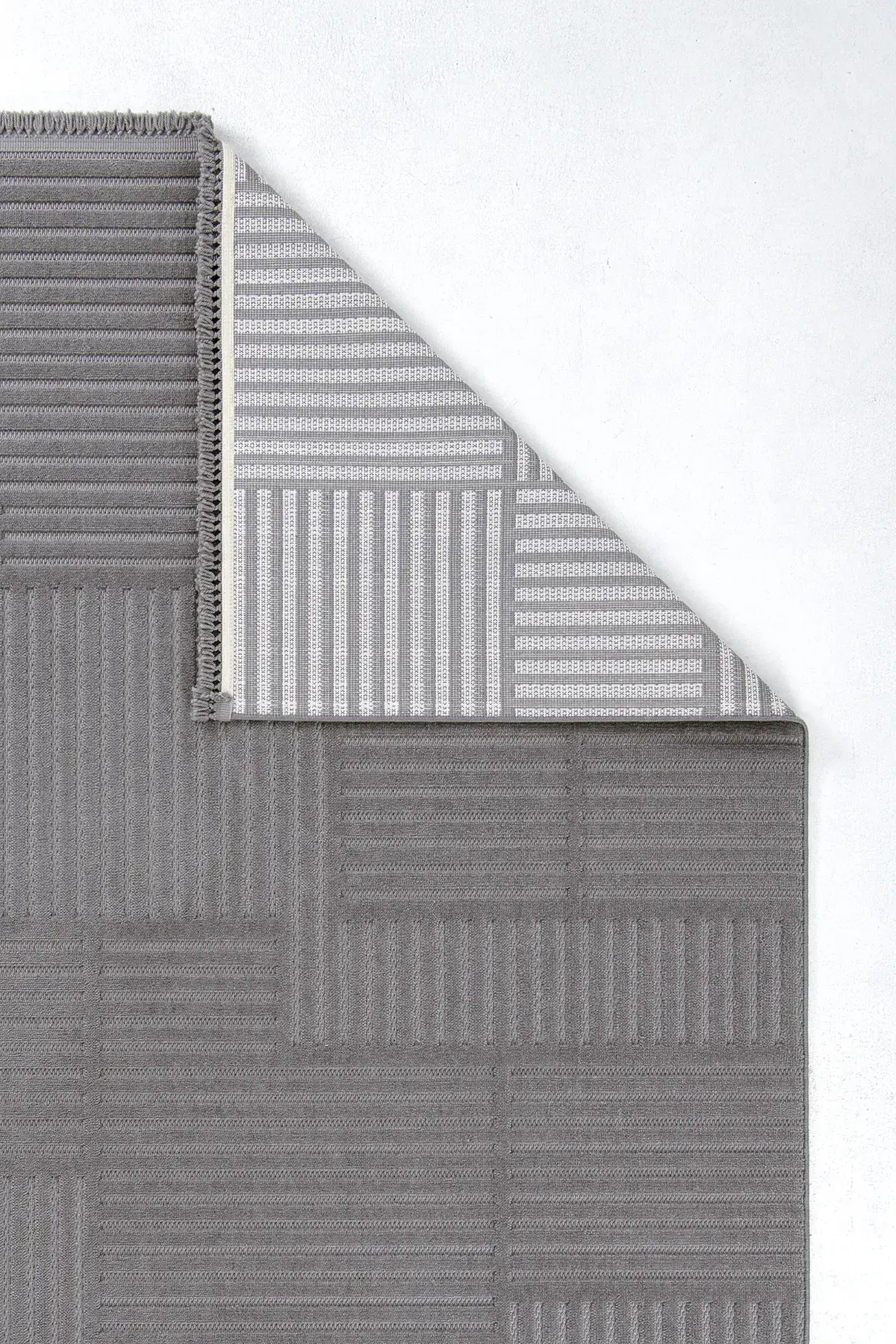 Dekorenti Prag 9202 Koyu Gri – Modern Örgü Saçaklı Yumuşak Tuşeli İskandinav Halı
