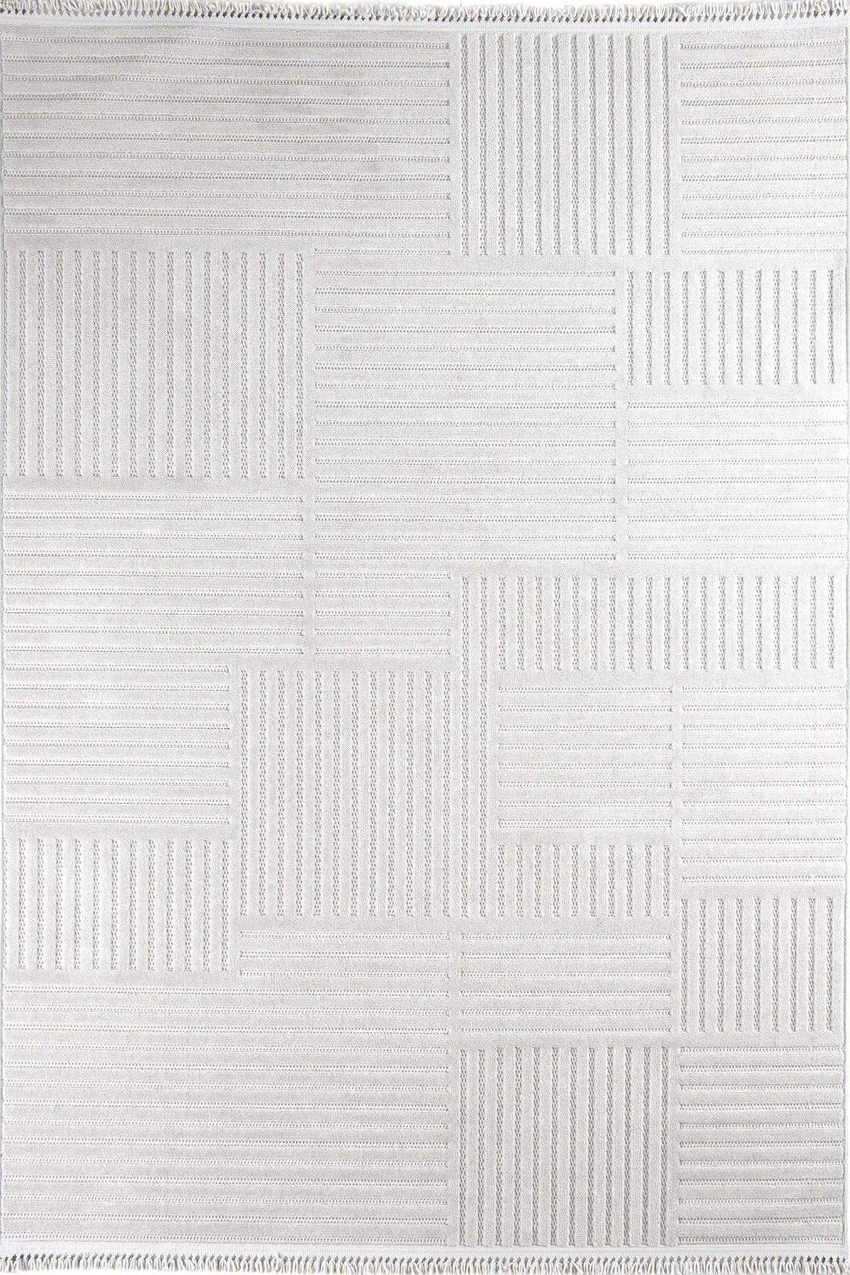 Dekorenti Prag 9203 Açık Gri – Modern Örgü Saçaklı Yumuşak Tuşeli İskandinav Halı