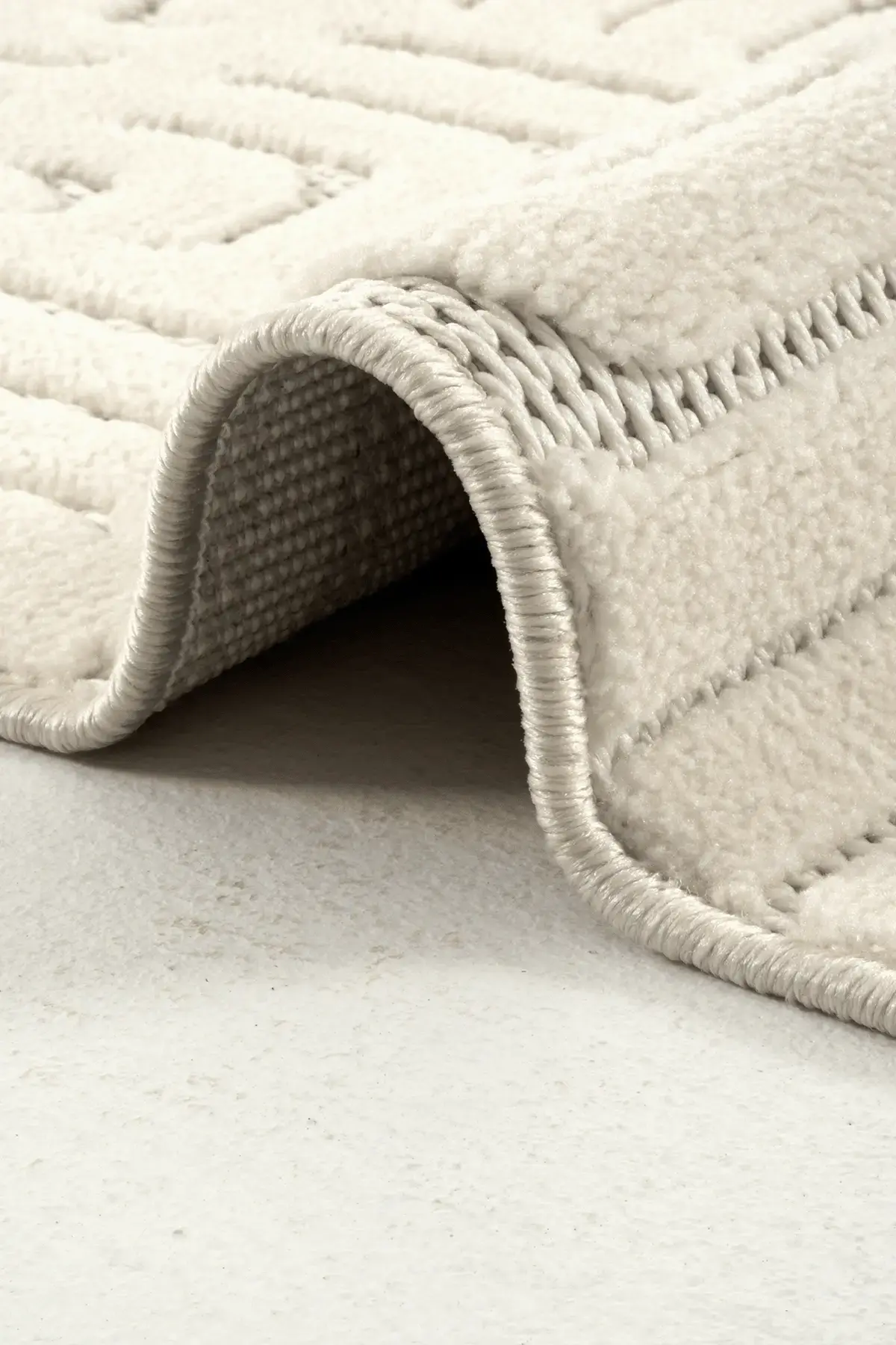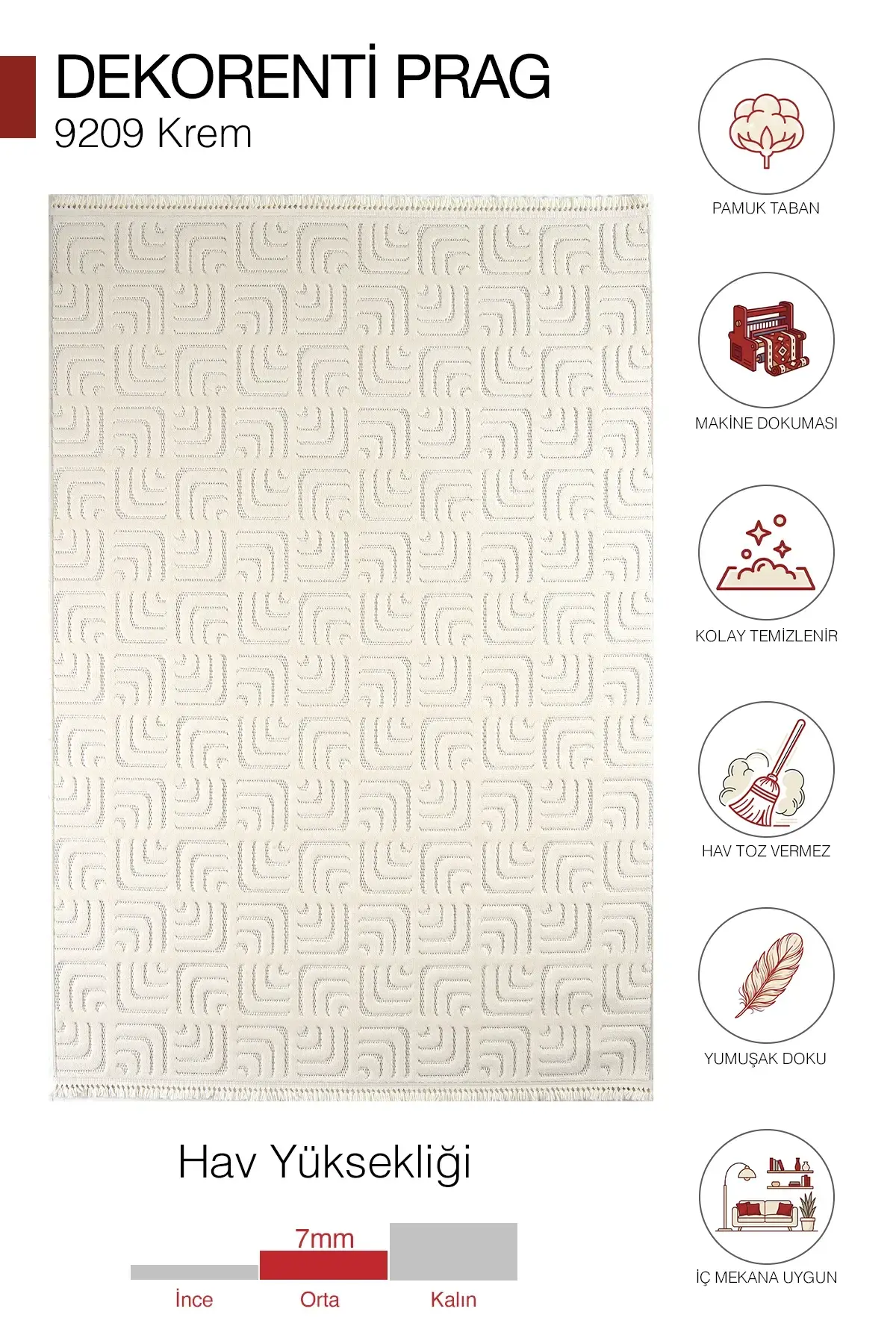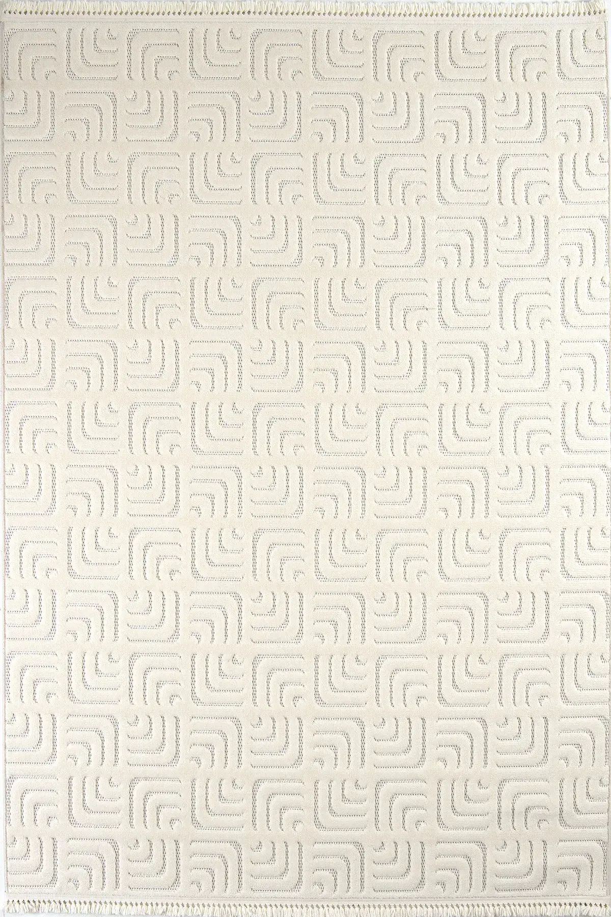 Dekorenti Prag 9209 Krem – Modern Örgü Saçaklı Yumuşak Tuşeli İskandinav Halı