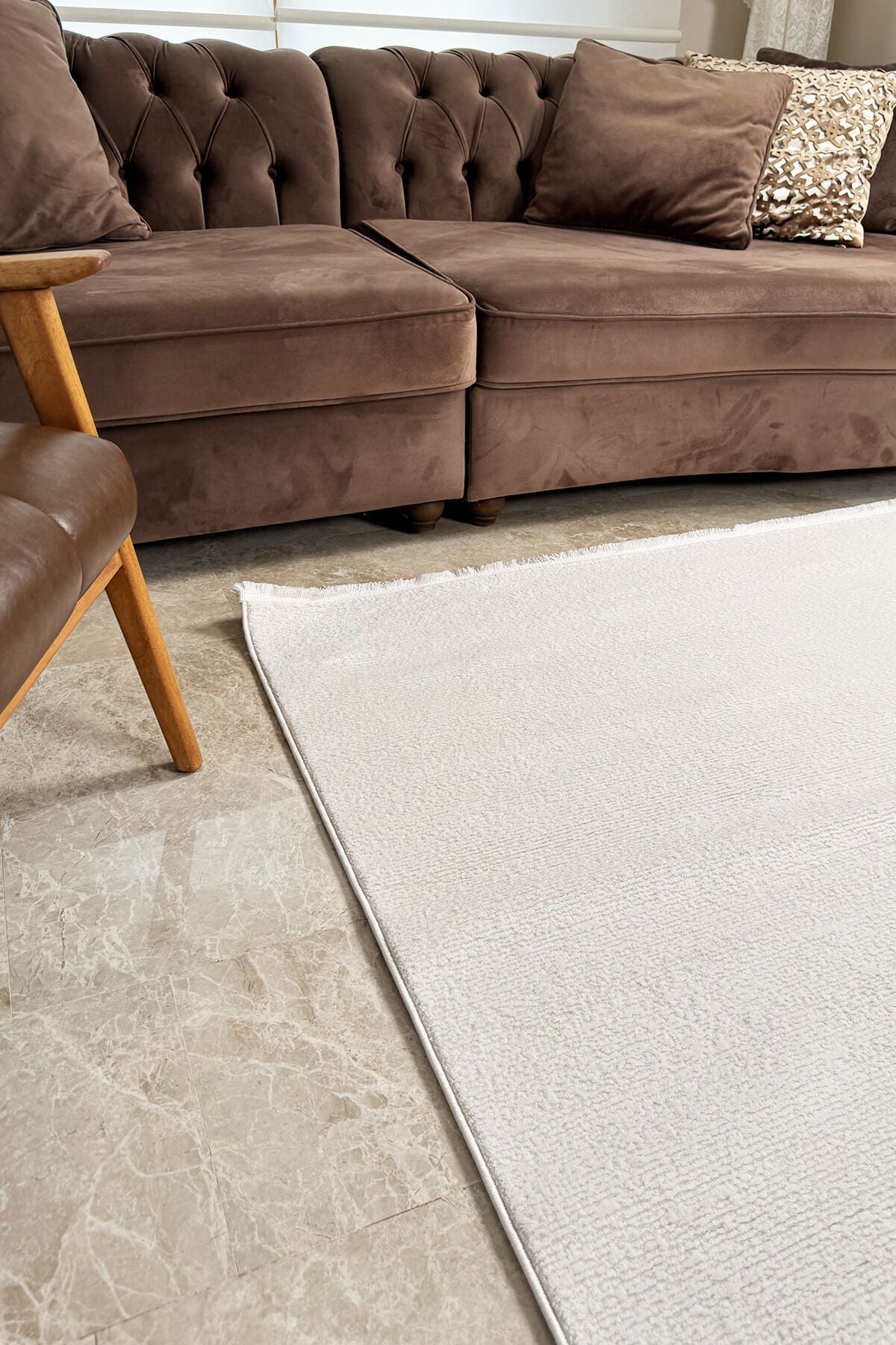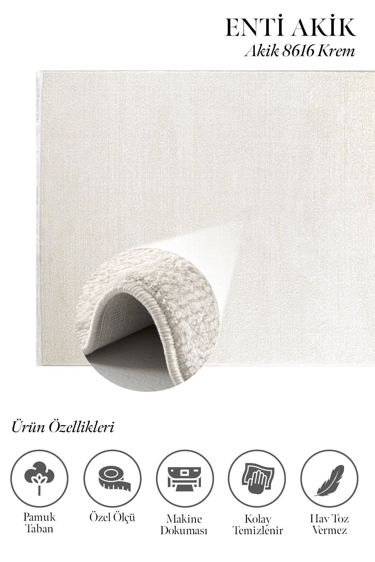 Akrilik iplik yapısı sayesinde hem şık bir duruş hem de konforlu bir kullanım sunan Enti Akik 8616 Krem, 11 mm hav yüksekliği ile adım attığınız anda yumuşaklık hissini yaşatır. Pamuk tabanı, zemine daha dengeli oturmasına yardımcı olurken kullanım konforunu artırır. Düz saçak detayı ise ürüne sade, modern ve temiz bir görünüm kazandırır.
