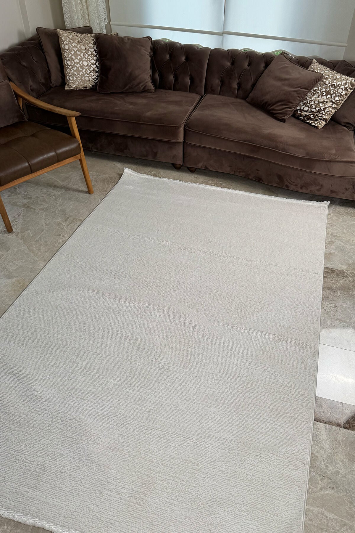 Enti Akik 8616 Krem, modern ve zarif desen anlayışını yumuşak dokulu konforla buluşturan özel bir halı serisidir. Bej, beyaz, kahverengi, gri, krem, yeşil ve antrasit tonlarının dekorasyona kolay uyum sağlayan şık geçişleri sayesinde yaşam alanlarınıza ferah, dengeli ve estetik bir görünüm kazandırır.