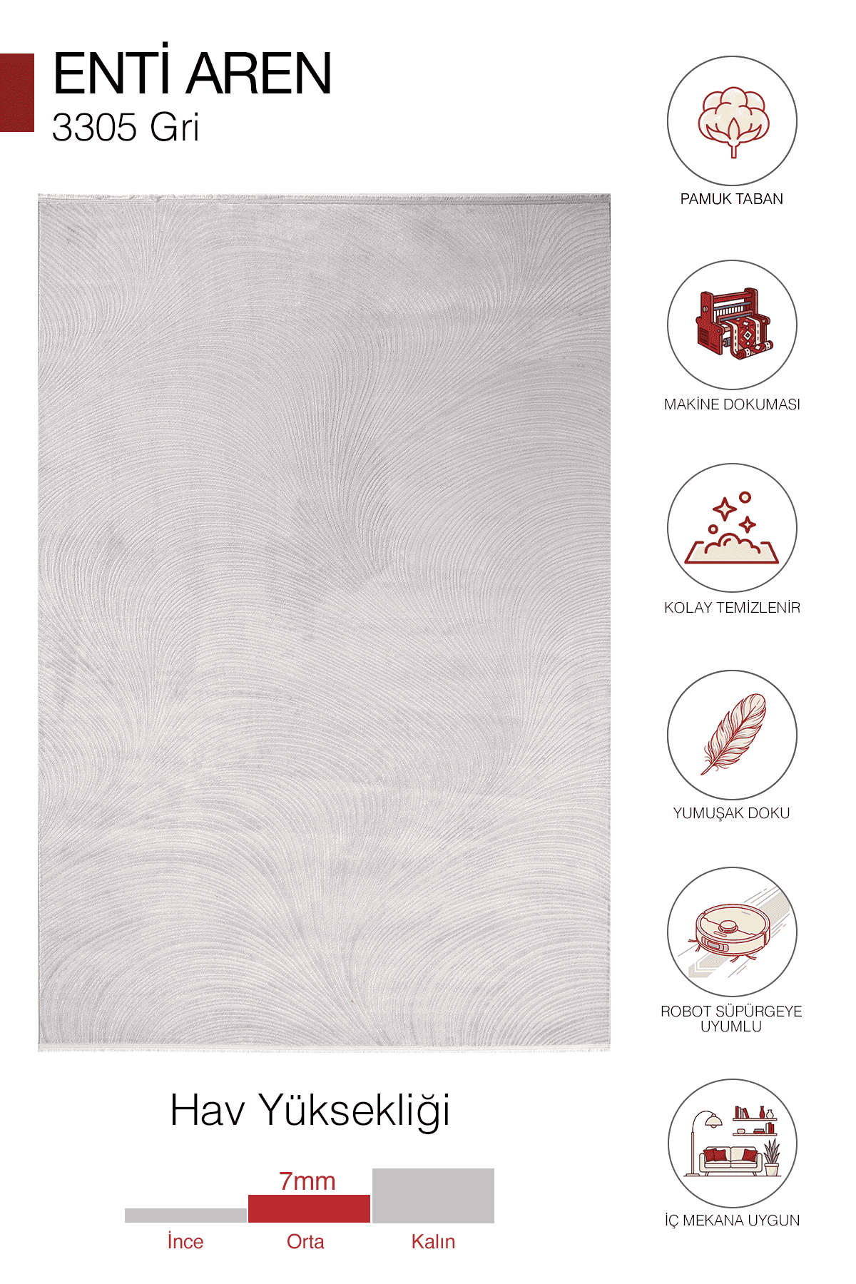 Aren 3305 Gri - Pamuk Tabanlı Akrilik Modern Halı