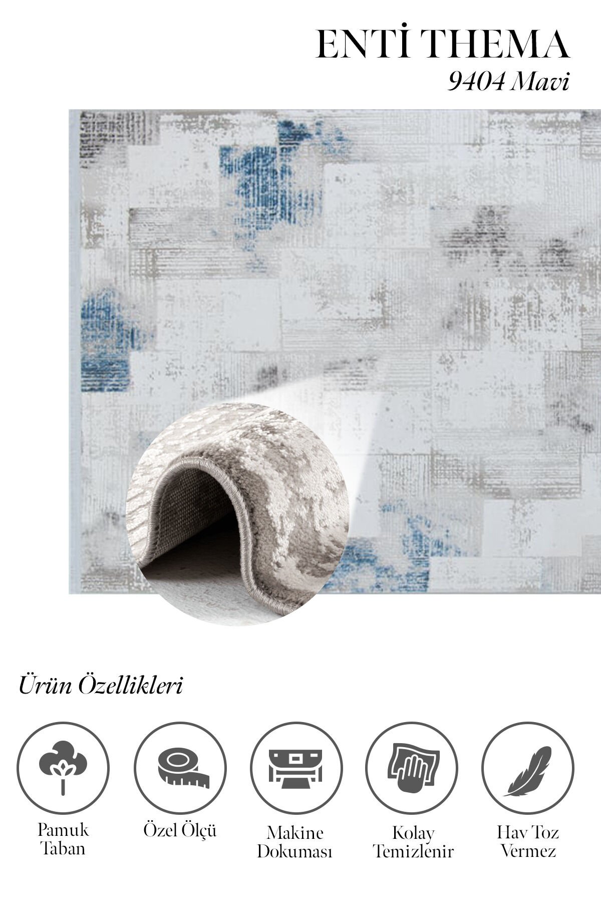 Canlı ama dengeli renk kullanımıyla öne çıkan Enti Thema 9404 Mavi Halı, gri ve açık tonların üzerine yerleştirilmiş modern geometrik dokusuyla yaşam alanlarına enerjik ve sofistike bir hava katar. Mavi geçiş detayları sayesinde klasik açık ton halılardan ayrılır ve dekorasyona güçlü bir karakter kazandırır.