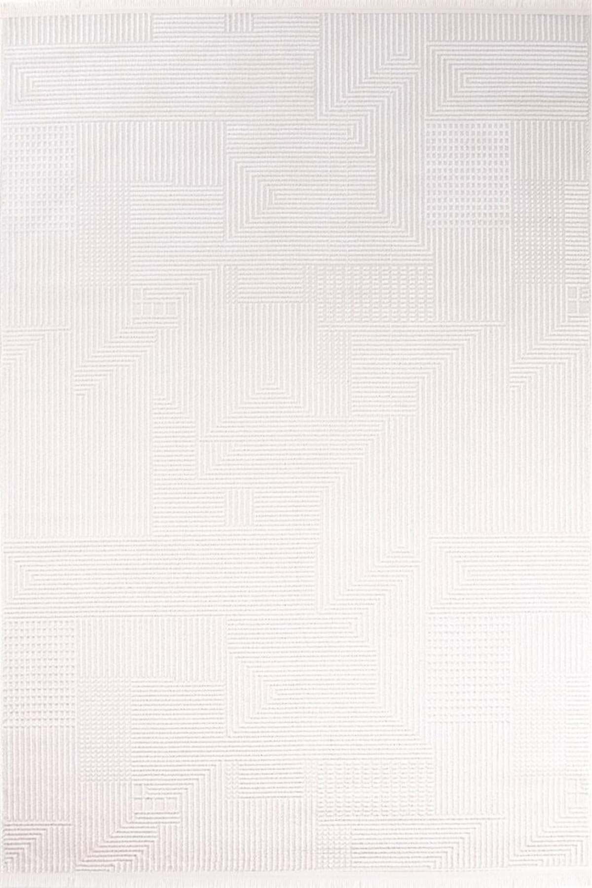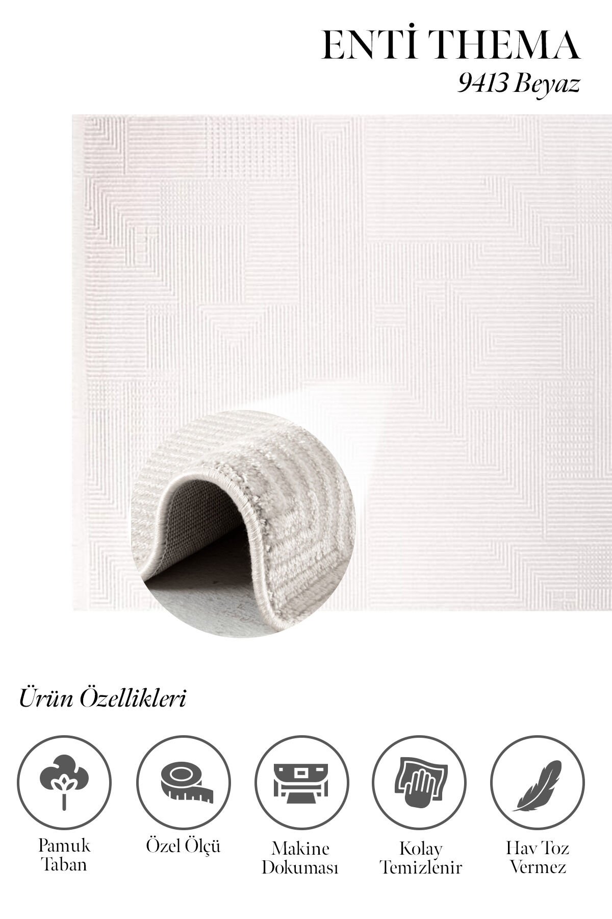 Enti Thema 9413 Beyaz - Modern Tarzda Zarif Dokulu Akrilik Halı