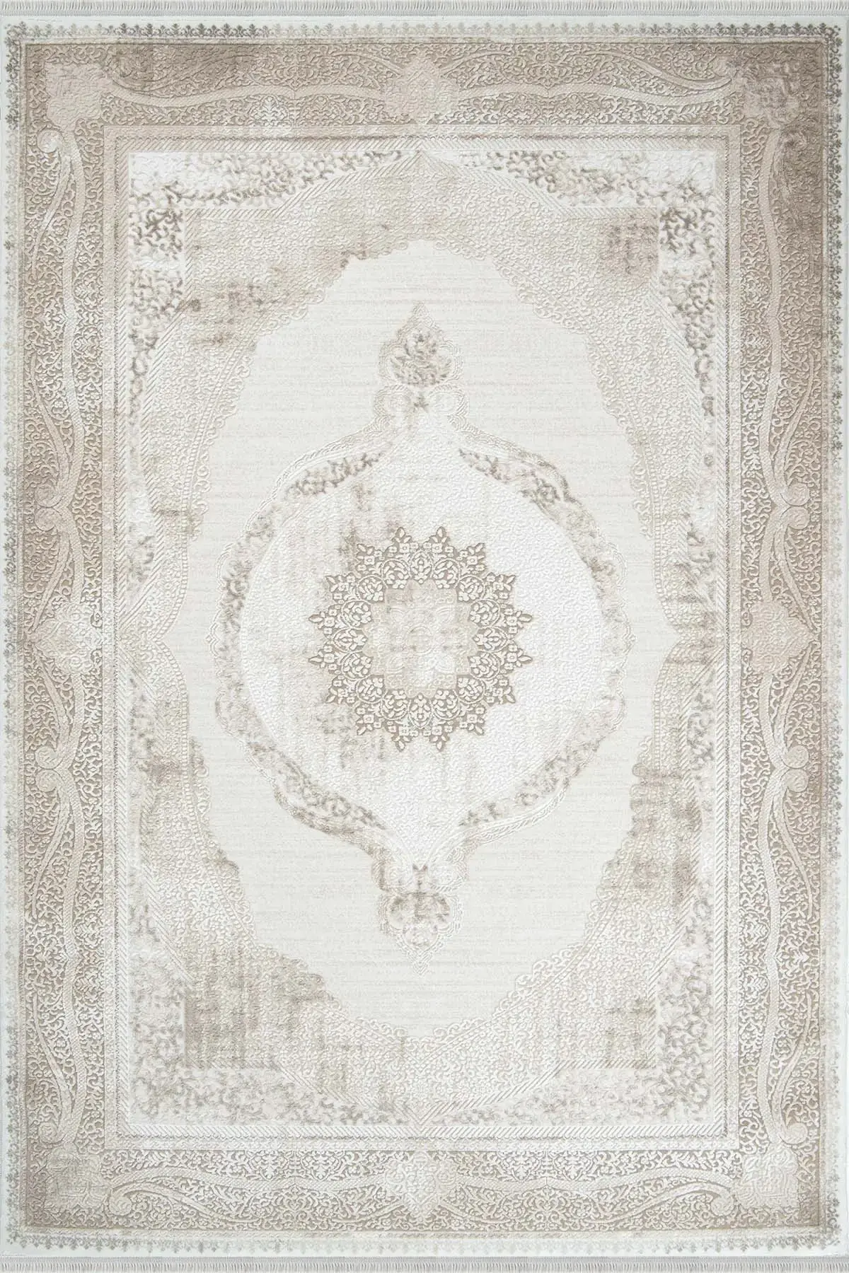 Romans Doku 2106 Bej, klasik zarafeti modern renk dengesiyle buluşturan gösterişli bir modeldir. Ortadaki madalyon formu ve çevresindeki ince desen geçişleri, halıya salonlarda dikkat çeken ama abartısız bir şıklık kazandırır. Bej ve krem tonlarının yumuşak uyumu sayesinde mekânı daha aydınlık ve seçkin gösterir.
