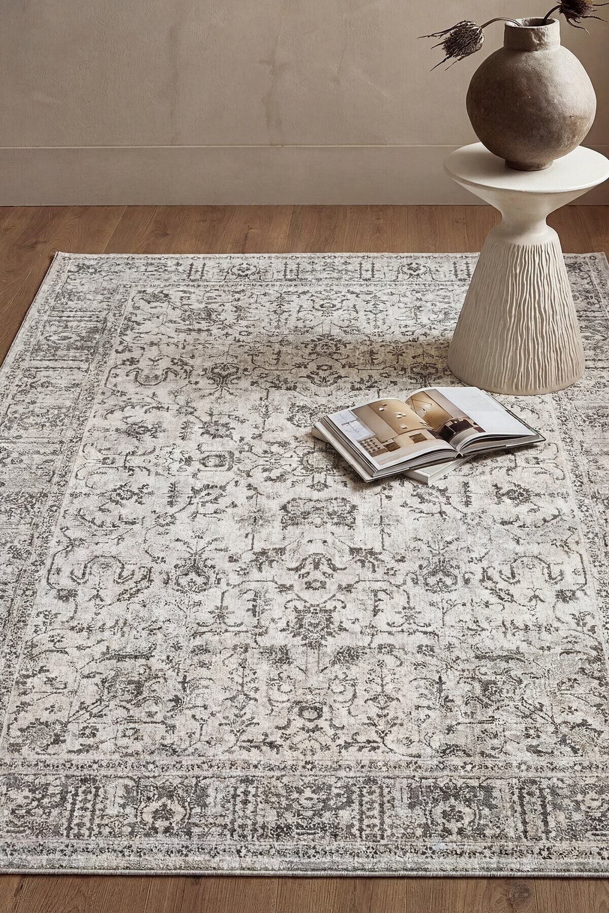 Romans Etro 2705 Gri - Spor Saçaklı Polyester Çerçeveli Vintage Halı