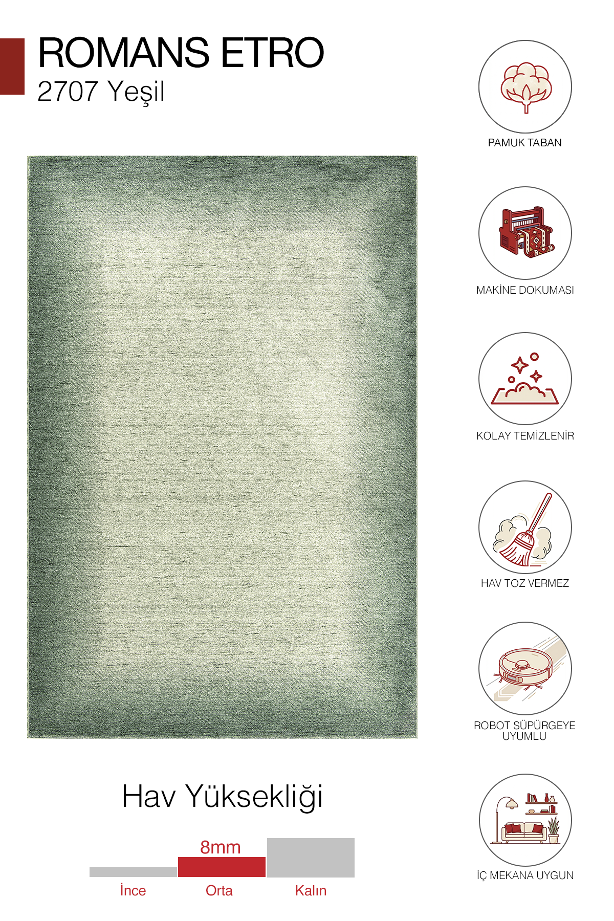 | Özellik | : | Tozumaz, Robot Süpürgeye Uygun, Saçaklı |