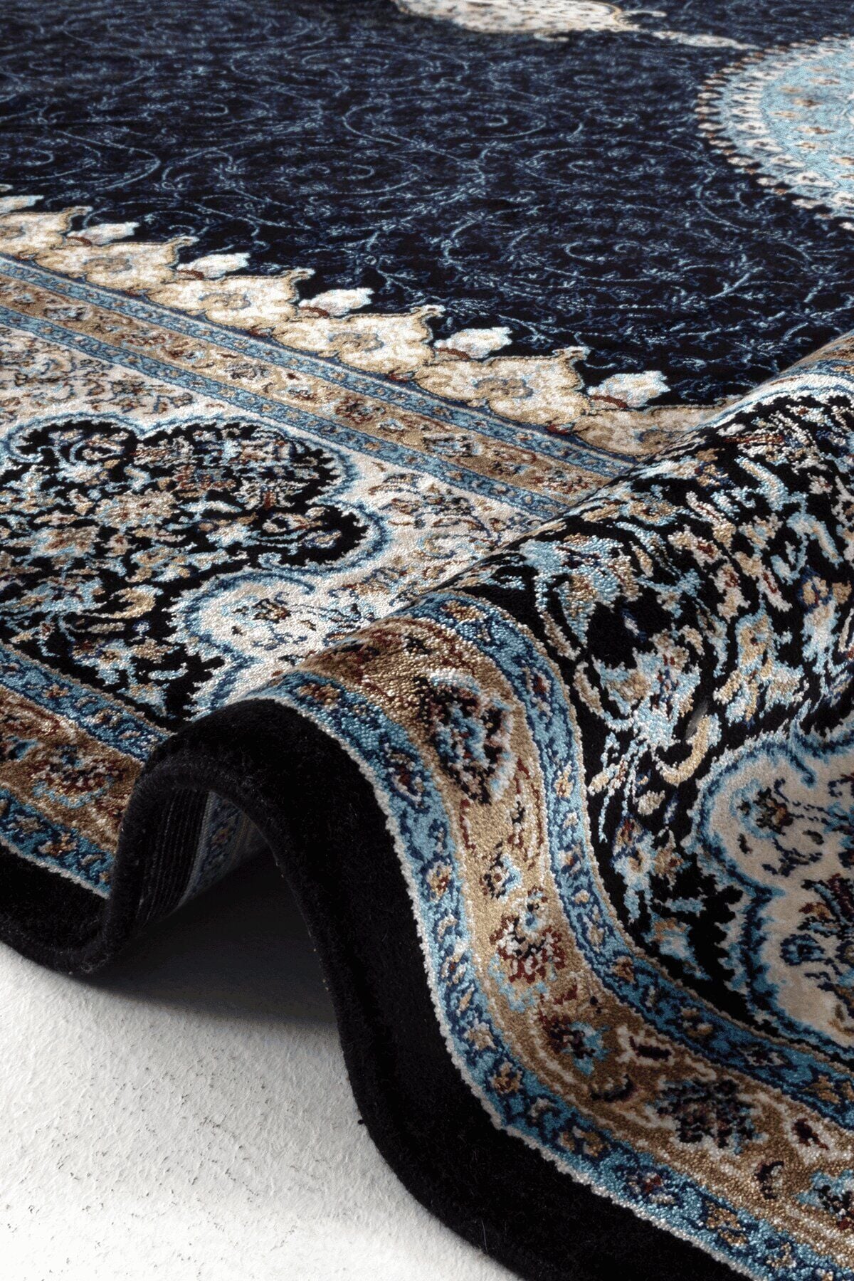 Romans Herat 2802 Mavi - Pamuk Tabanlı İpeksi Dokulu Göbekli Salon Halısı