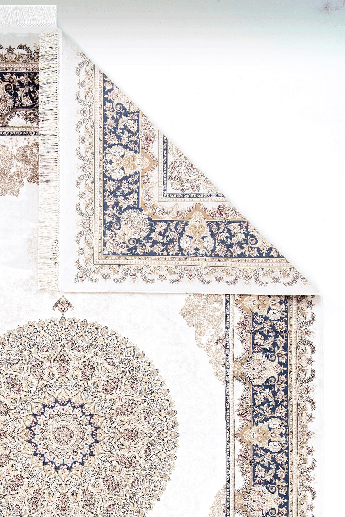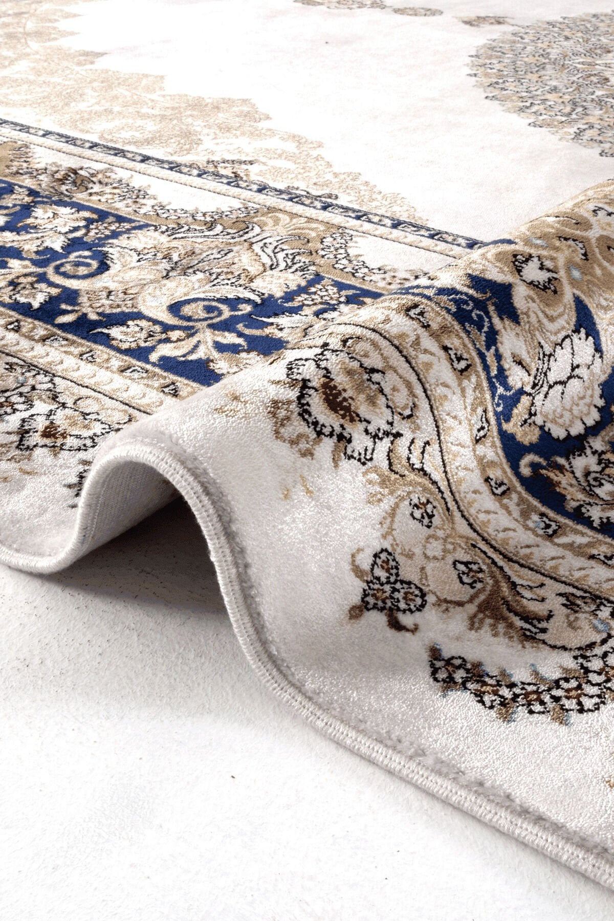 Romans Herat 2804 Mavi - Pamuk Tabanlı İpeksi Dokulu Göbekli Salon Halısı
