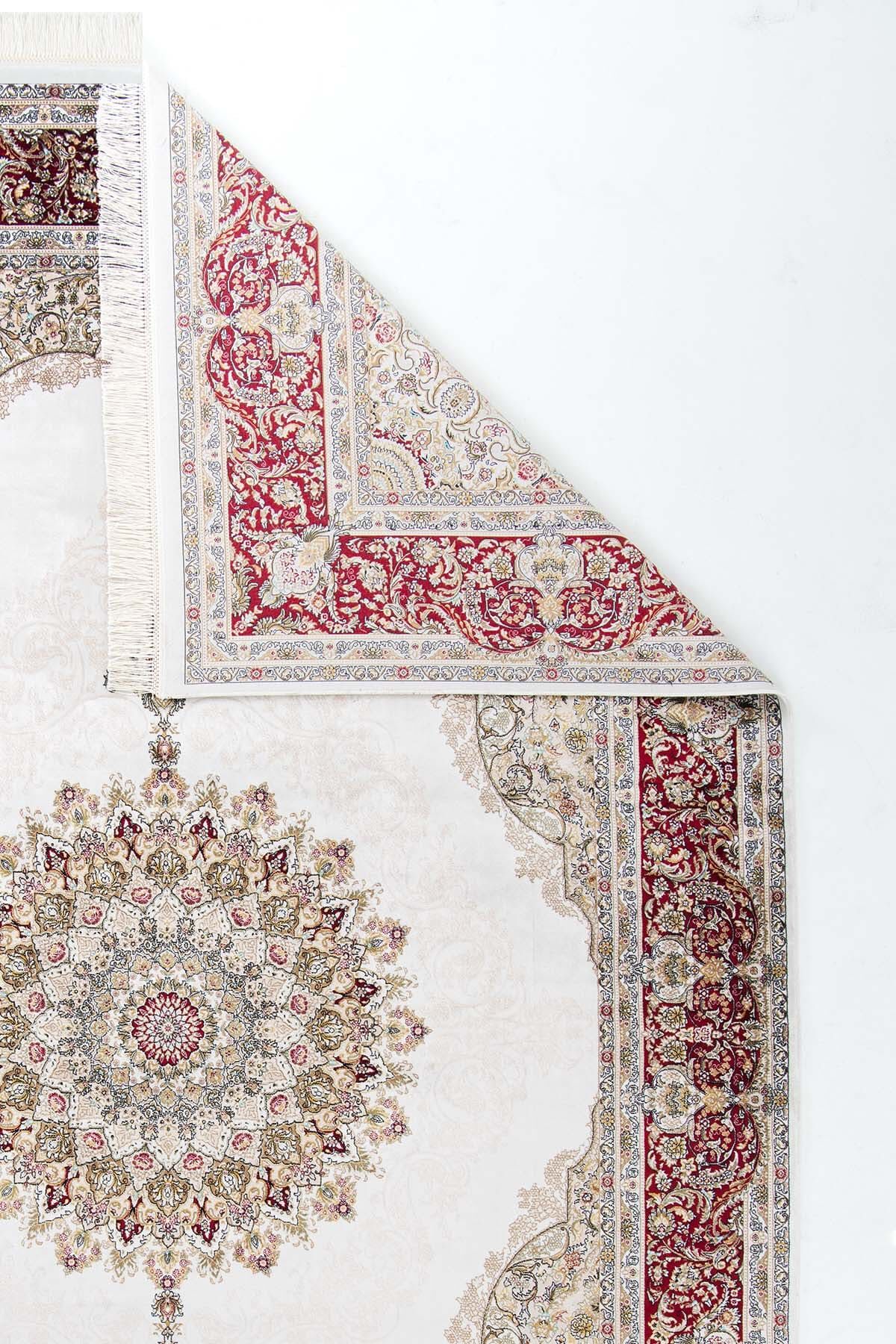 Romans Herat 2806 Krem Kırmızı - Pamuk Tabanlı İpeksi Dokulu Göbekli Salon Halısı