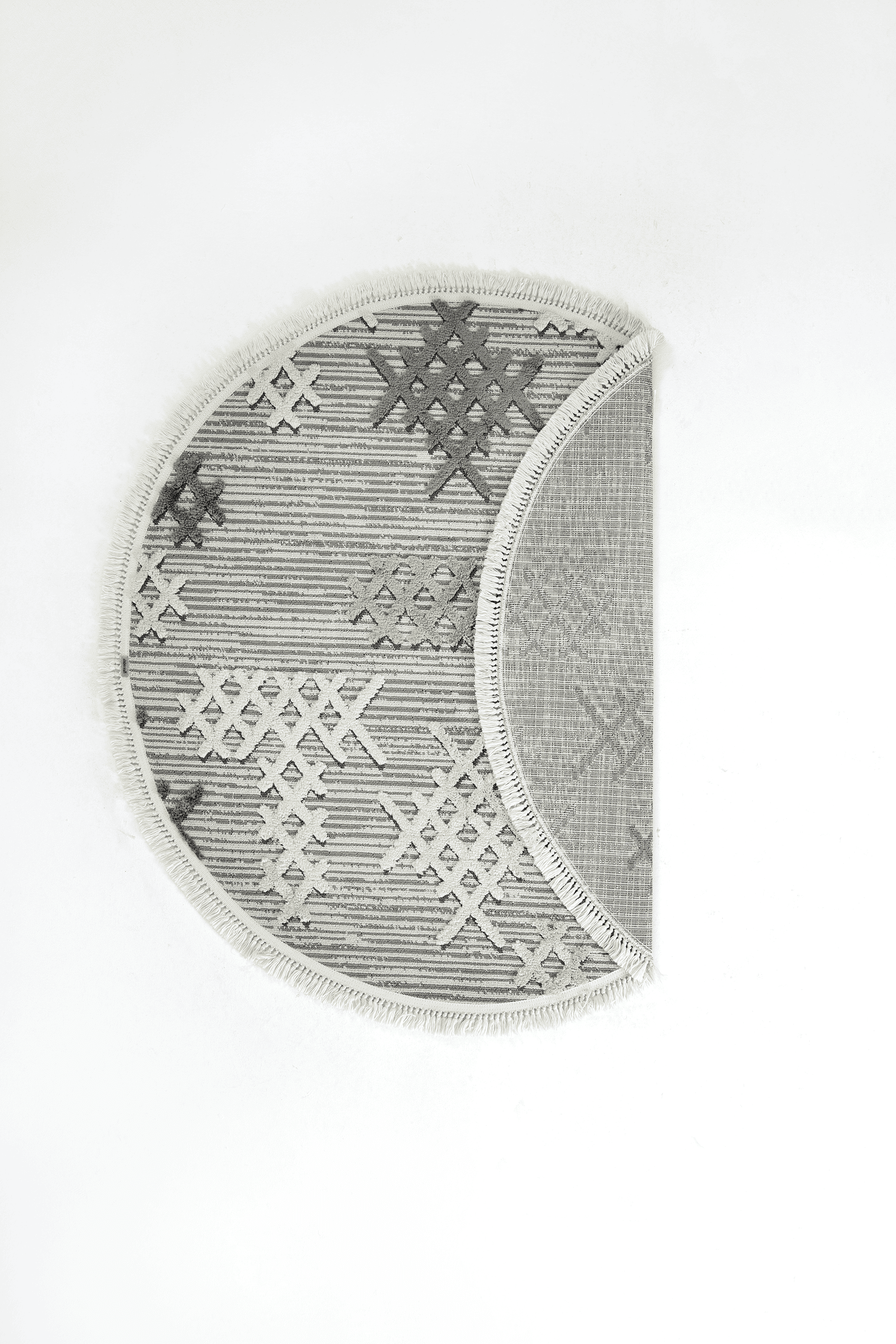 Step 2205 Gri Daire - Etnik Desenli Yumuşak Tozumaz Halı 080x080
