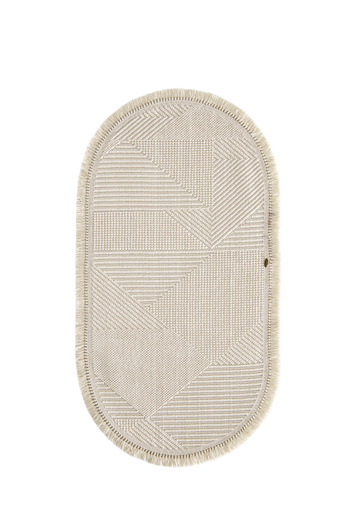 Vega 1454 Krem Oval - Polip İplik Pamuk Taban Örgü Saçaklı Modern Halı 080x150